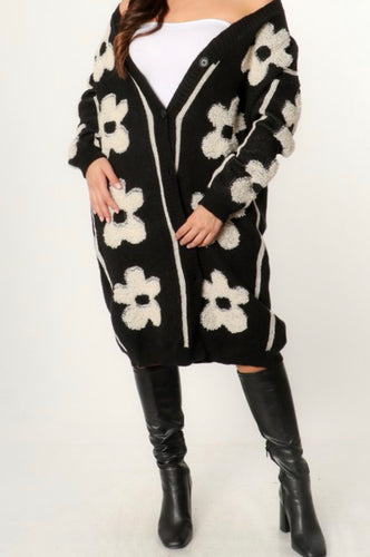 “LAYSHA” BLACK & WHITE FLORAL CARDIGAN