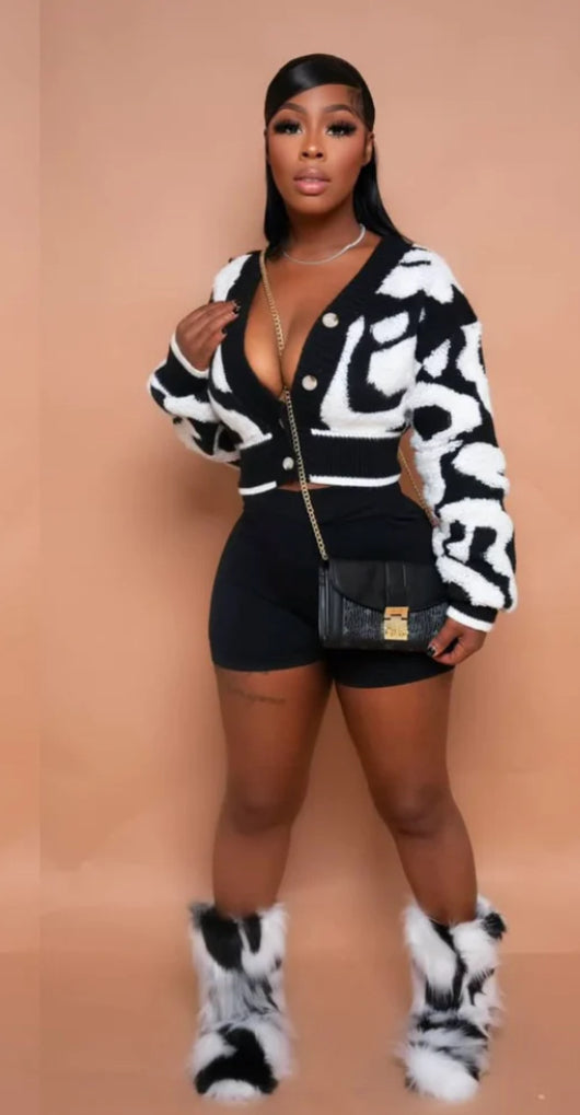 “FLUFFY FURRY” BLACK & WHITE MID BOOT